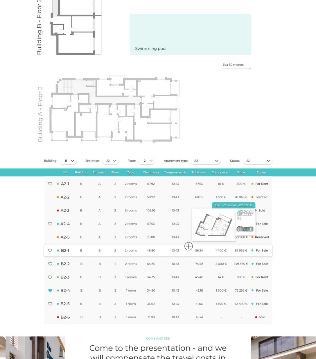 Уебсайтът за „Open Sea Residence“ се превърна в ключов инструмент за представяне на комплекса и привличане на инвеститори и купувачи. Интерактивните карти и виртуалните обиколки дадоха възможност на посетителите да разгледат в детайли всеки аспект на своя бъдещ дом, докато интегрираните функции за търсене улесниха намирането на подходящите апартаменти.Open Sea Residence
